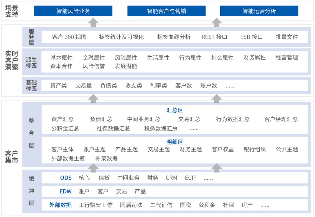 通过海量内外部数据刻画出银行客户的360°视图,进行客户信息整合、客户标签构建、客户数据产品服务等手段,为银行精准营销、风险预警、产品定价、广告投放、客户服务等经营活动提供依据。提供客户画像全景展示,具备客户标签手工维护和自定义场景功能,银行可对客户标签进行修改,可自定义场景,可进行客户群分析、数据共享、筛选并导出自定义客户等。