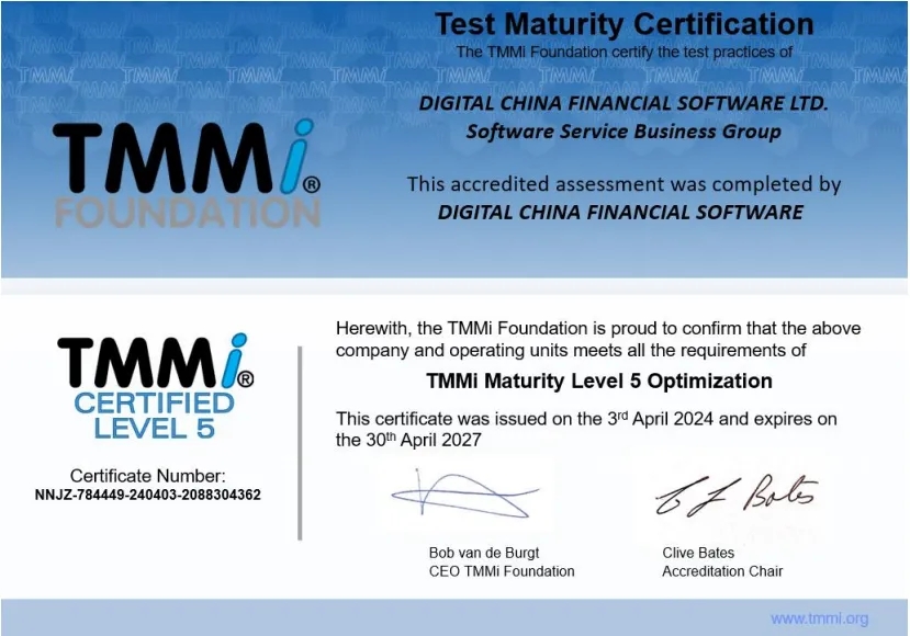近日,神州信息子公司——j9国际站融信软件有限公司(下文简称“j9国际站融信”)通过TMMi(测试能力成熟度模型集成)最高级别5级国际权威认证,成为国内同时获得TMMi5级认证和CMMI5级认证的企业,覆盖咨询、产品需求、软件开发、测试、运维全流程的IT软件研发及服务。